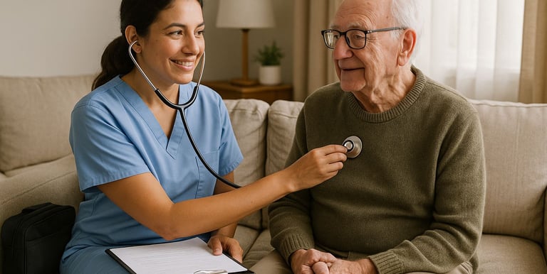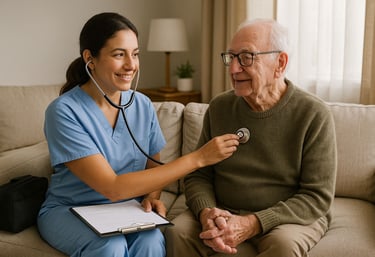 Our team visits seniors at home, offering health check-ups, meals, social activities, and transport help.